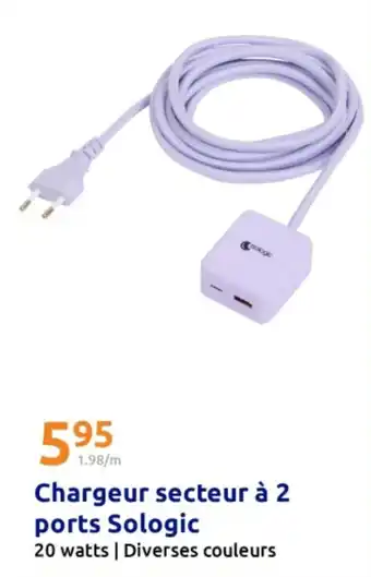 Actuellement en offre chez Action : Chargeur secteur à 2 ports sologic ✅ Valable du 14-01 au 20-01.