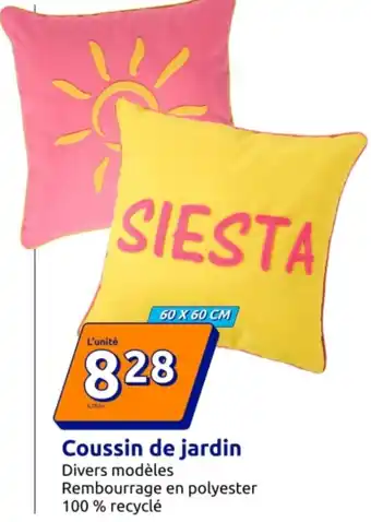 Actuellement, Coussin de jardin est en promotion chez Action. Toutes les informations utiles comme le prix, les conditions et la durée de validité sont affichées sur cette page. Consultez également les promotions similaires pour Coussin de jardin, afin de faire le meilleur choix. La promo Coussin de jardin est valable du 29-04-2026 au 05-05-2026. Si elle est expirée, regardez les autres offres équivalentes. Vous pouvez aussi suivre cette catégorie de produit pour être alerté lorsqu’une nouvelle promotion Coussin de jardin apparaît chez Action.Questions fréquemment posées au sujet de Coussin de jardin