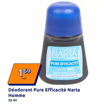 Actuellement en offre chez Action : Déodorant pure efficacité narta homme ✅ Valable du 21-01 au 27-01.