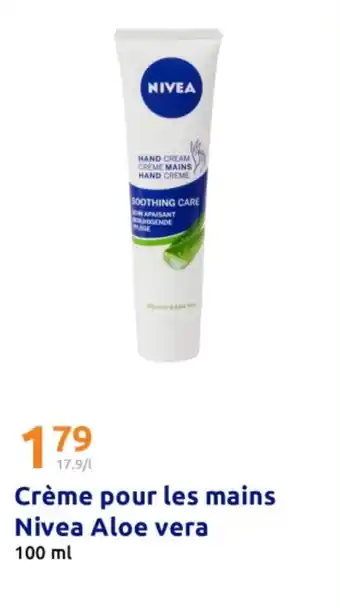 Actuellement en offre chez Action : NIVEA Crème pour les mains Aloe vera ✅ Valable du 25-02 au 3-03.