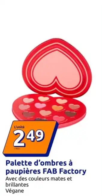 Actuellement en offre chez Action : Palette d'ombres à paupières fab factory ✅ Valable du 4-02 au 10-02.