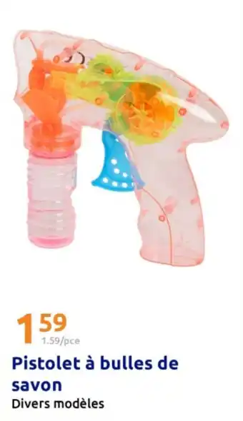 Actuellement en offre chez Action : Pistolet à bulles de savon ✅ Valable du 4-03 au 10-03.