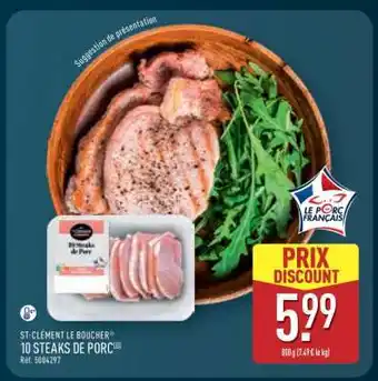 En plus de l'offre 10 Steaks de Porc, ALDI propose une large gamme de produits. Consultez le Catalogue ALDI hebdomadaire pour découvrir les meilleures offres et promotions. En plus de 10 Steaks de Porc, il y a aussi : STEAKS HACHÉS BOEUF, 4 steaks bavette de flanchet & 2 STEAKS HACHÉS FAÇON BOUCHÈRE.