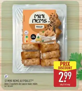 En plus de l'offre 12 mini nems au poulet, ALDI propose une large gamme de produits. Consultez le Catalogue ALDI hebdomadaire pour découvrir les meilleures offres et promotions. En plus de 12 mini nems au poulet, il y a aussi : Nems au poulet, 8 nems au poulet & 8 nems au poulet.
