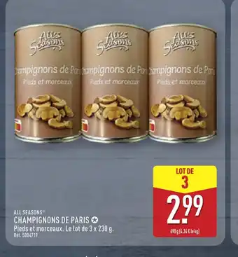 ALL SEASONS Champignons de paris offres et promotions en ligne chez ALDI