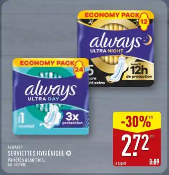 Always serviettes hygiéniques offres et promotions en ligne chez ALDI