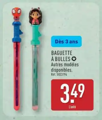 En plus de l'offre BAGUETTE À BULLES, ALDI propose une large gamme de produits. Consultez le Catalogue ALDI hebdomadaire pour découvrir les meilleures offres et promotions. En plus de BAGUETTE À BULLES, il y a aussi : Gazillion solution à bulles 1 l, Baguette bio & Machine à bulles fleur.