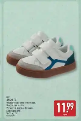 En plus de l'offre Baskets, ALDI propose une large gamme de produits. Consultez le Catalogue ALDI hebdomadaire pour découvrir les meilleures offres et promotions. En plus de Baskets, il y a aussi : Baskets adulte, Baskets adulte & L&d baskets.