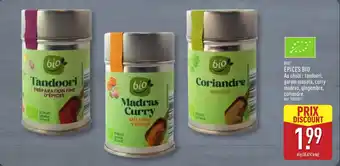 Le prix de l'offre Bio epices bio se trouve également en haut de la page, ainsi que la date à laquelle l'offre est disponible. Vous pouvez également vérifier les prix dans le Catalogue ALDI actuel ou sur le site Internet de ALDI. Les offres vous permettent d'acheter les produits ALDI au prix le plus bas.