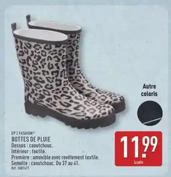 En plus de l'offre BOTTES DE PLUIE, ALDI propose une large gamme de produits. Consultez le Catalogue ALDI hebdomadaire pour découvrir les meilleures offres et promotions. En plus de BOTTES DE PLUIE, il y a aussi : Bottes de pluie enfant, Vase bottes de pluie & Up 2 fashion bottes de pluie.