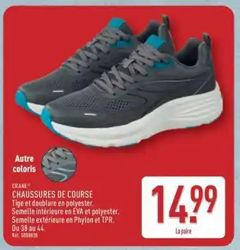 En plus de l'offre CHAUSSURES DE COURSE, ALDI propose une large gamme de produits. Consultez le Catalogue ALDI hebdomadaire pour découvrir les meilleures offres et promotions. En plus de CHAUSSURES DE COURSE, il y a aussi : Crane chaussures de course, Chaussures & CARE Tapis de course run-18.