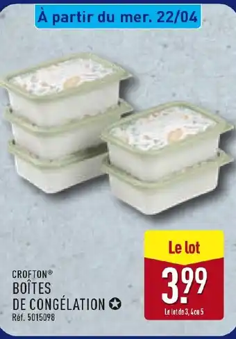 Actuellement en offre chez ALDI : CROFTON Boîtes de congélation ✅ Valable du 21-04 au 27-04.