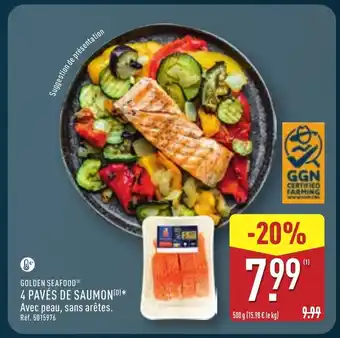 Actuellement en offre chez ALDI : GOLDEN SEAFOOD 4 pavés de saumon ✅ Valable du 23-12 au 29-12.