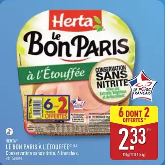 En plus de l'offre HERTA Le bon paris à l'étouffée, ALDI propose une large gamme de produits. Consultez le Catalogue ALDI hebdomadaire pour découvrir les meilleures offres et promotions. En plus de HERTA Le bon paris à l'étouffée, il y a aussi : Jambon cuit supérieur le bon paris herta, HERTA Pate a tarte & Jambon le supérieur à l'etouffée fleury michon.
