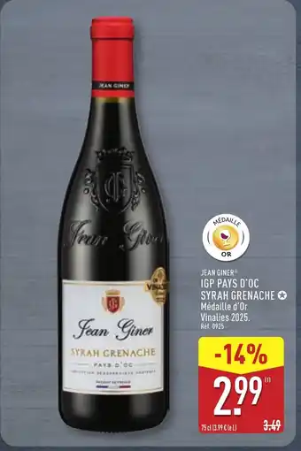 Actuellement en offre chez ALDI : JEAN GINER Igp pays d'oc syrah grenache ✅ Valable du 30-12 au 5-01.