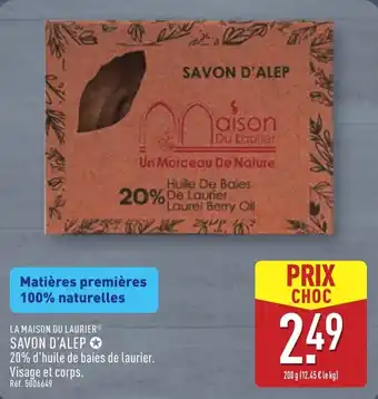 Actuellement en offre chez ALDI : LA MAISON DU LAURIER Savon d'alep ✅ Valable du 16-12 au 22-12.