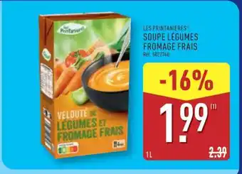 Actuellement en offre chez ALDI : LES PRINTANIÈRES SOUPE LÉGUMES FROMAGE FRAIS ✅ Valable du 3-02 au 9-02.