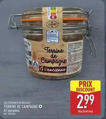 Actuellement en offre chez ALDI : Les terrines du bocage - terrine de campagne ✅ Valable du 13-01 au 19-01.