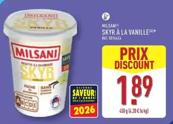 Actuellement en offre chez ALDI : Milsani skyr à la vanille ✅ Valable du 3-03 au 9-03.
