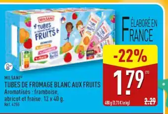 Actuellement en offre chez ALDI : MILSANI TUBES DE FROMAGE BLANC AUX FRUITS ✅ Valable du 28-04 au 4-05.
