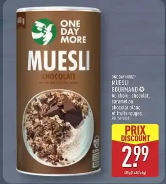 En plus de l'offre Muesli gourmand, ALDI propose une large gamme de produits. Consultez le Catalogue ALDI hebdomadaire pour découvrir les meilleures offres et promotions. En plus de Muesli gourmand, il y a aussi : ONE DAY MORE Muesli Gourmand, Crownfield muesli crunchy & Céréal - muesli.