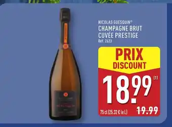Actuellement en offre chez ALDI : NICOLAS GUESQUIN Champagne brut cuvée prestige ✅ Valable du 23-12 au 29-12.