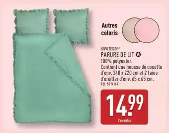 En plus de l'offre PARURE DE LIT, ALDI propose une large gamme de produits. Consultez le Catalogue ALDI hebdomadaire pour découvrir les meilleures offres et promotions. En plus de PARURE DE LIT, il y a aussi : Parure de lit atla, JULIE Parure de lit & Parure de lit mickey.