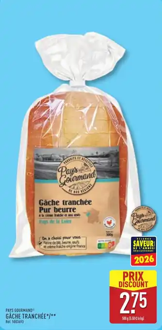 Actuellement en offre chez ALDI : Pays gourmand gâche tranchée ✅ Valable du 3-03 au 9-03.