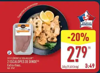 Actuellement en offre chez ALDI : ST-CLÉMENT LE VOLAILLER 2 ESCALOPES DE DINDE ✅ Valable du 13-01 au 19-01.