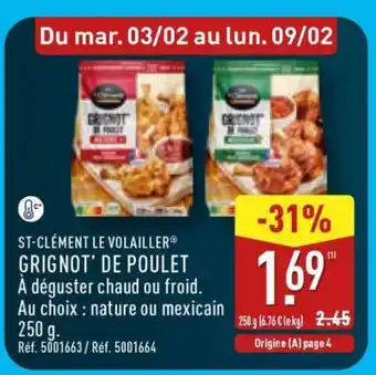 ST-CLÉMENT LE VOLAILLER GRIGNOT' DE POULET offres et promotions en ligne chez ALDI