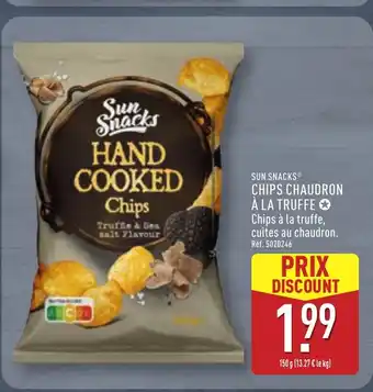 Actuellement en offre chez ALDI : SUN SNACKS Chips chaudron à la truffe ✅ Valable du 23-12 au 29-12.