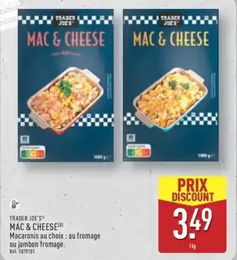 Actuellement, Trader joe's - mac & cheese est en promotion chez ALDI. Toutes les informations utiles comme le prix, les conditions et la durée de validité sont affichées sur cette page. Consultez également les promotions similaires pour Trader joe's - mac & cheese, afin de faire le meilleur choix. La promo Trader joe's - mac & cheese est valable du 02-03-2026 au 02-09-2026. Si elle est expirée, regardez les autres offres équivalentes. Vous pouvez aussi suivre cette catégorie de produit pour être alerté lorsqu’une nouvelle promotion Trader joe's - mac & cheese apparaît chez ALDI.Questions fréquemment posées au sujet de Trader joe's - mac & cheese