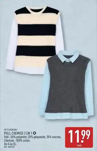 Actuellement en offre chez ALDI : Up2fashion - pull chemise 2 en 1 ✅ Valable du 2-03 au 2-09.