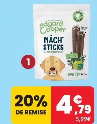 Actuellement en offre chez Animalis : Edgard & cooper stick à mâcher dental pomme eucalyptus - l ✅ Valable du 2-03 au 22-03.