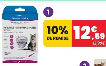 Actuellement en offre chez Animalis : Francodex pipettes antiparasitaires icardine pour chat - 1ml x4 ✅ Valable du 27-04 au 17-05.