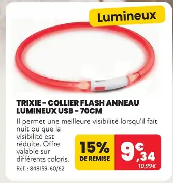Actuellement en offre chez Animalis : Trixie collier flash anneau lumineux usb - 70cm ✅ Valable du 2-02 au 22-02.