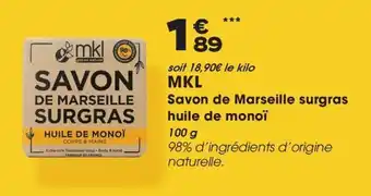 Offre Mkl savon de marseille surgras huile de monoï chez Aprium Pharmacie