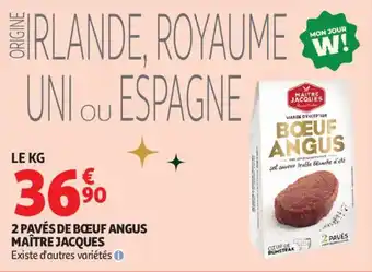 Actuellement en offre chez Auchan Supermarché : 2 pavés de bœuf angus maître jacques ✅ Valable du 20-12 au 24-12.