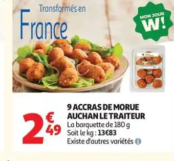 Actuellement en offre chez Auchan Supermarché : 9 accras de morue auchan le traiteur ✅ Valable du 27-01 au 7-02.