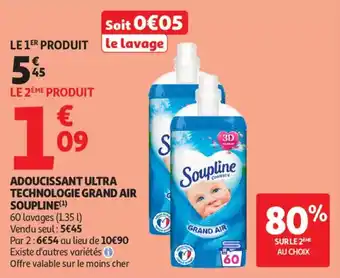Actuellement en offre chez Auchan Supermarché : Adoucissant ultra technologie grand air soupline ✅ Valable du 10-02 au 21-02.