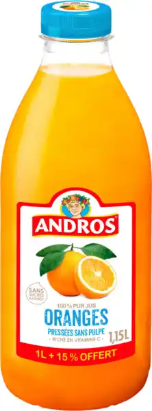 Actuellement en offre chez Auchan Supermarché : Andros jus d'oranges sans pulpe pressées andros ✅ Valable du 14-04 au 20-04.