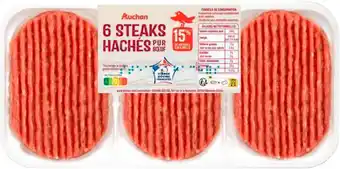 Actuellement en offre chez Auchan Supermarché : Auchan 6 steaks hachés pur boeuf auchan ✅ Valable du 21-04 au 2-05.