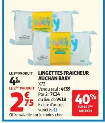 Actuellement en offre chez Auchan Supermarché : AUCHAN BABY Lingettes fraicheur ✅ Valable du 24-02 au 7-03.