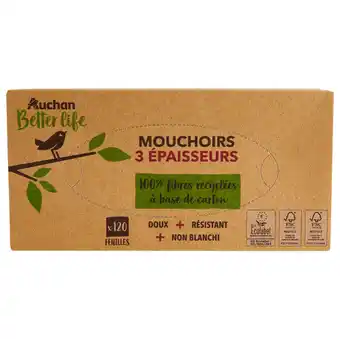 Actuellement en offre chez Auchan Supermarché : Auchan better life boîte de mouchoirs better life auchan ✅ Valable du 8-04 au 18-04.