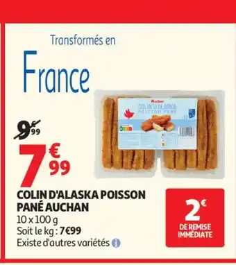 Actuellement en offre chez Auchan Supermarché : AUCHAN Colin dalaska poisson pané ✅ Valable du 24-02 au 7-03.