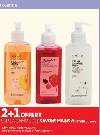 Actuellement en offre chez Auchan Supermarché : AUCHAN COSMIA Sur la gamme des savons mains ✅ Valable du 24-02 au 7-03.