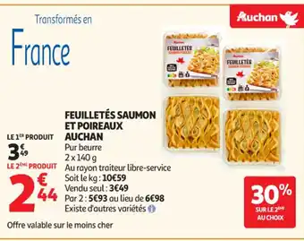 Actuellement en offre chez Auchan Supermarché : AUCHAN Feuilletés saumon et poireaux ✅ Valable du 16-12 au 24-12.