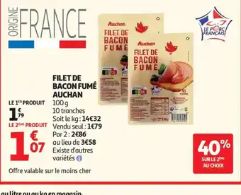 Actuellement en offre chez Auchan Supermarché : AUCHAN Filet de bacon fumé ✅ Valable du 24-02 au 7-03.