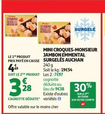 AUCHAN Mini croques-monsieur jambon emmental surgelé 480 g