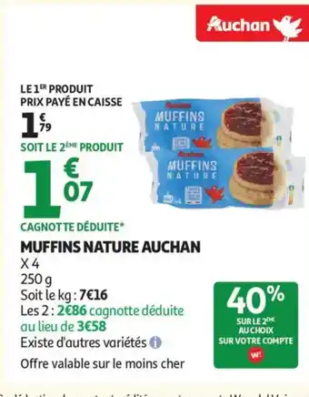 Actuellement en offre chez Auchan Supermarché : AUCHAN Muffins nature ✅ Valable du 2-01 au 10-01.